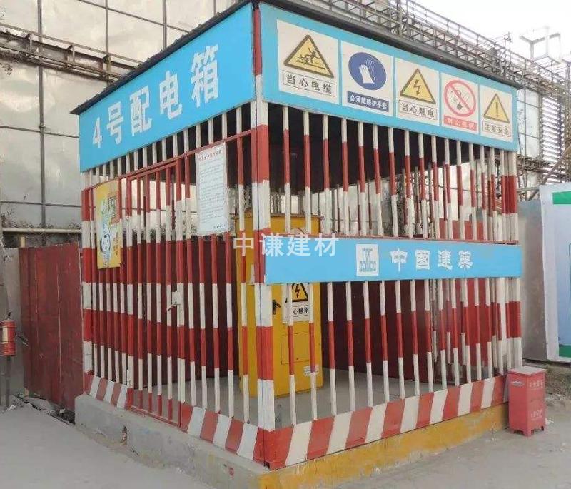 3.雙層硬防護(hù)間的防護(hù)棚外立面掛藍(lán)底白字:加強(qiáng)安全用電,防止觸電傷害等安全警示語,操作規(guī)程牌,帽頭設(shè)置建筑企業(yè)標(biāo)識;